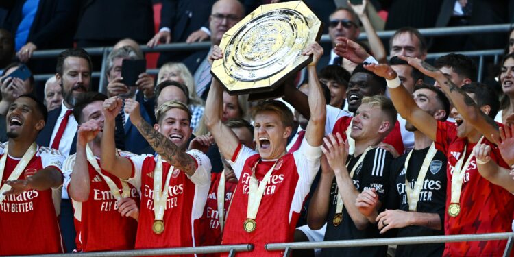 Arsenal won the Community Shield for the 17th time with a 4-1 penalty-shootout win over Premier League champions Manchester City following a 1-1 draw at Wembley.