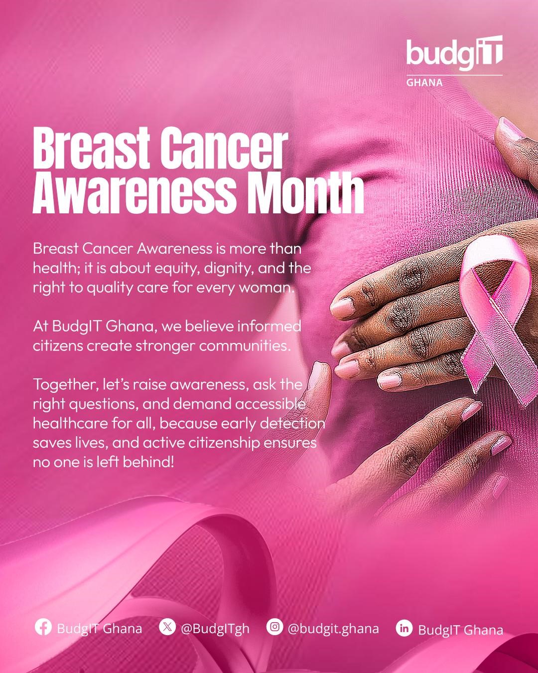 Every October, the world goes pink; a unified symbol of hope, solidarity, and a call to action in the fight against breast cancer. But in Ghana, this is far more than a colour. It is a call to public awareness, a civic moment where health intersects with governance, equity, and citizen empowerment. At BudgIT Ghana, our mission to promote transparency and accountability extends beyond budgets and public projects. It embraces the health of our people as an integral part of a just and functional democracy.