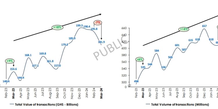 Per the BoG’s FinTech Report for Q1 2024, the volume of mobile money transactions within the first three months of the year was 1.86 billion, a 21.6 percentage points higher than the 1.53bn volume of transactions recorded at end-Q1 2023.