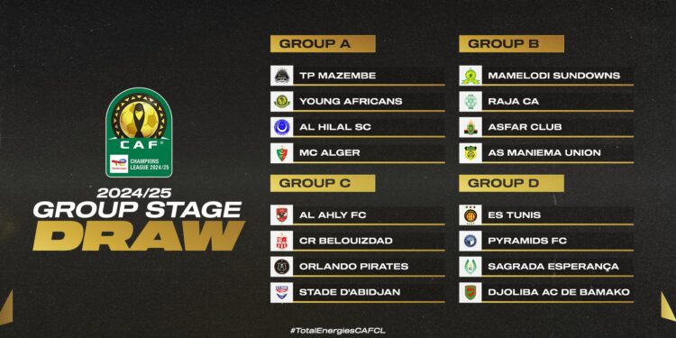 Young Africans of Tanzania, who were unfortunate quarterfinal losers to Sundowns last season, find themselves in Group A with TP Mazembe of DR Congo, Al Hilal of Sudan, and Mouloudia Alger of Algeria. Coached by Argentine Miguel Gamondi, Young Africans feature standout midfielder Stephane Aziz Ki from Burkina Faso, who scored four goals in the qualifiers.