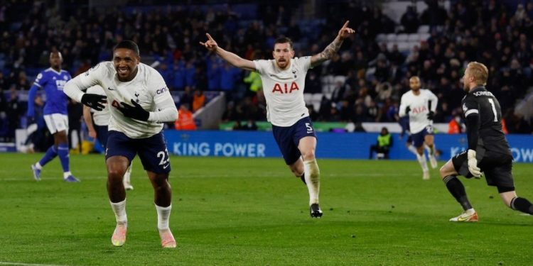 Leicester looked to be strolling to victory but Bergwijn hammered home from close range on 90+5 minutes before scampering through following a fine Kane pass 80 seconds later and finished off the inside of the post.