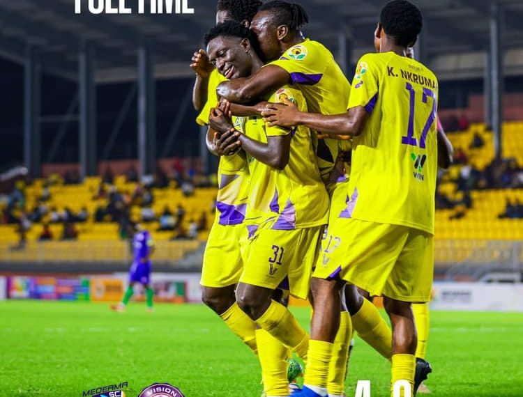 With this win, Medeama now sits proudly at the top of the table with six points from two matches, having scored six goals and conceded none. The victory also marked an important moment in their head-to-head record against Vision FC, improving their standing after both teams had won one match against each other last season.