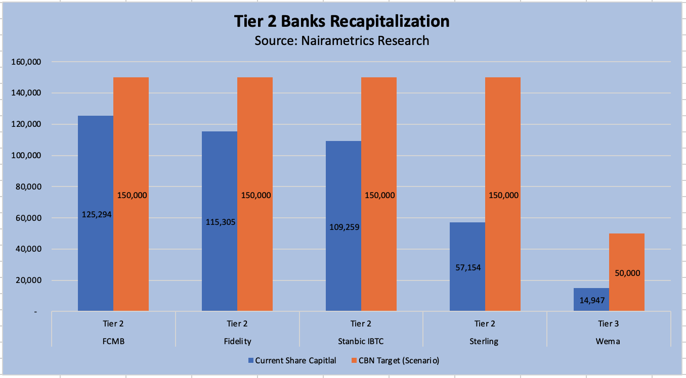 - Based on a scenario of N300 billion share capital, Tier 1 banks could be required to raise around a combined N472 billion.