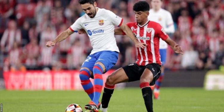 Gorka Guruzeta gave Bilbao a first-minute lead but Barca were ahead just after the half-hour mark as Robert Lewandowski equalised and Lamine Yamal made it 2-1