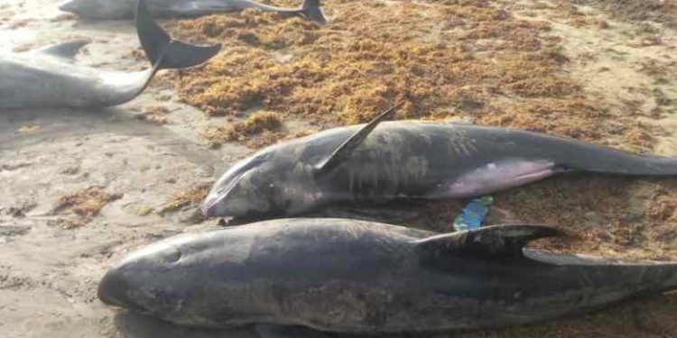 At least 60 dead dolphins and other large fishes including tuna have been washed ashore in some coastal communities of Ghana, authorities have confirmed.
