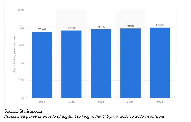 Digital transformation has been by far one of the most discussed topics within the ecosystem and virtually all financial institutions have digitized their operations in one way or the other However, full digitalization is still far off and at a slow pace due to many factors. Although Deloitte (2022) indicates that 73% of people worldwide use online banking at least once per month, majority are concentrated in the West where for example in the US alone, 76% of the surveyed respondents use a mobile banking app according to Forbes (2022).