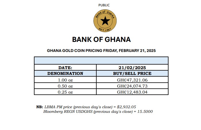 At the prevailing exchange rate of $1 to GHS 15.50, the 1oz BoG Gold Coin is now valued at GHS 47,321.