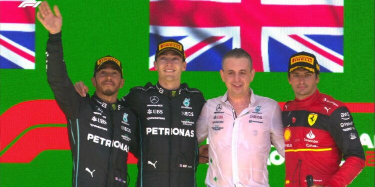 George Russell took his maiden Grand Prix victory in some style at Sao Paulo, Mercedes taking their first win and one-two of the season with Lewis Hamilton finishing second over Ferrari’s Carlos Sainz.