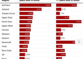 Ghana: 79,733 girls aged 12-17 either married or living with a man About 79,733 girls in Ghana aged between 12 ...