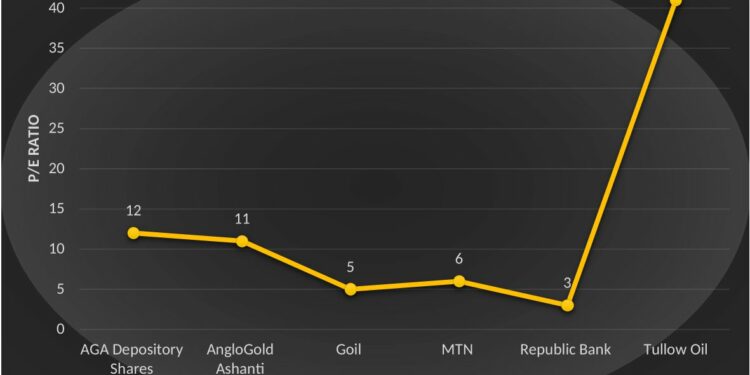 Hence comparing P/E ratios of Tullow Oil, Kosmos Energy and Eni would be more appropriate, unfortunately, the latter two companies are not listed on the Ghana Stock Exchange (GSE).